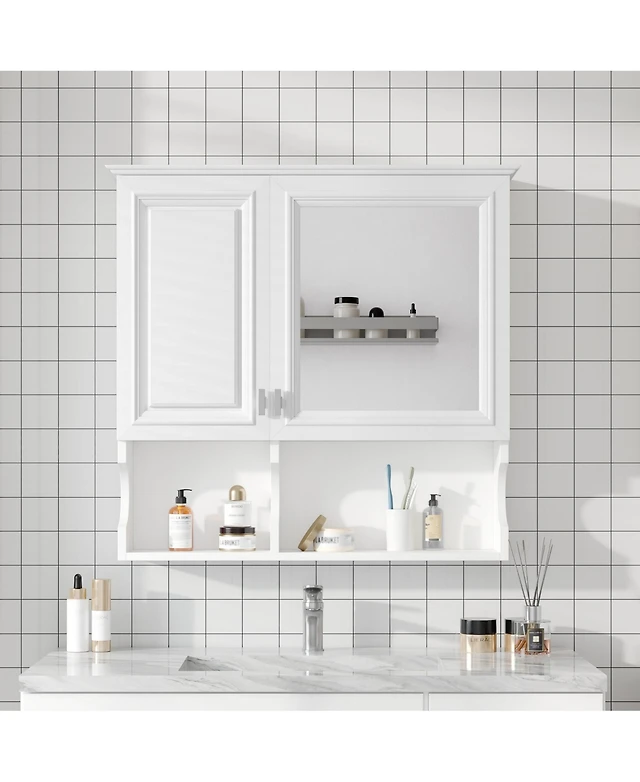 Volenca Bathroom Wall Cabinet, 2 Doors, Adjustable Shelf, Wall-Mounted Over-Toilet Storage w/ Open Shelves, White