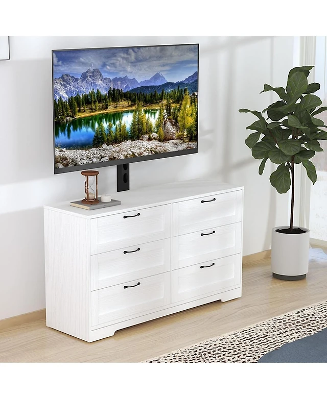 gaomon Tv Stand with Mount and 6 Drawers Storage Fits 32/45/55/65/75/80 Inch TVs, Entertainment Center w/Height Adjustable Mount for Living Room