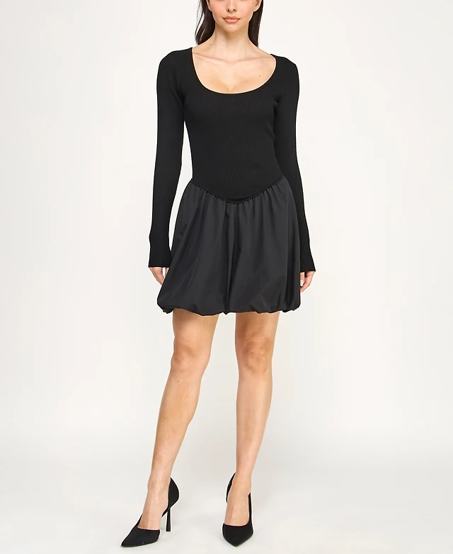 Bubble Hem Mixed Media Mini Dress