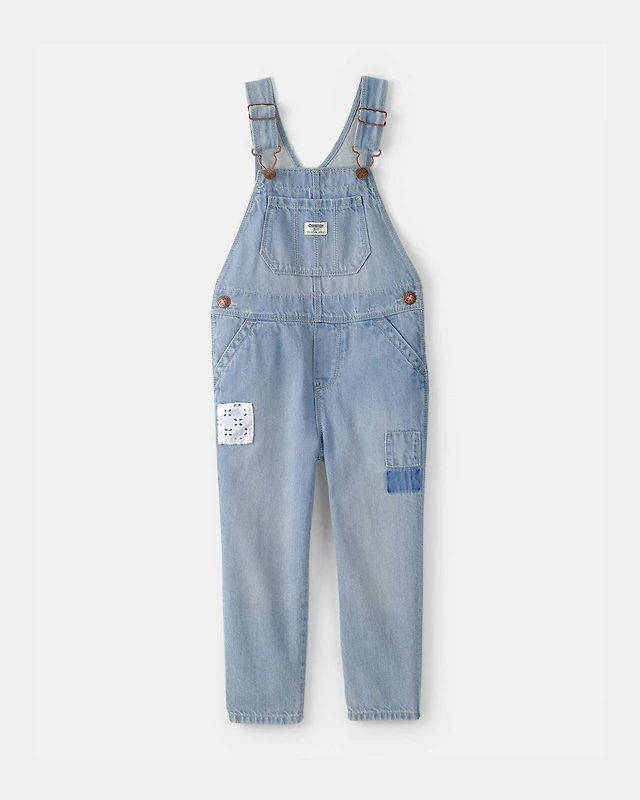 Toddler Girl Denim Patch Overalls - Light Wash