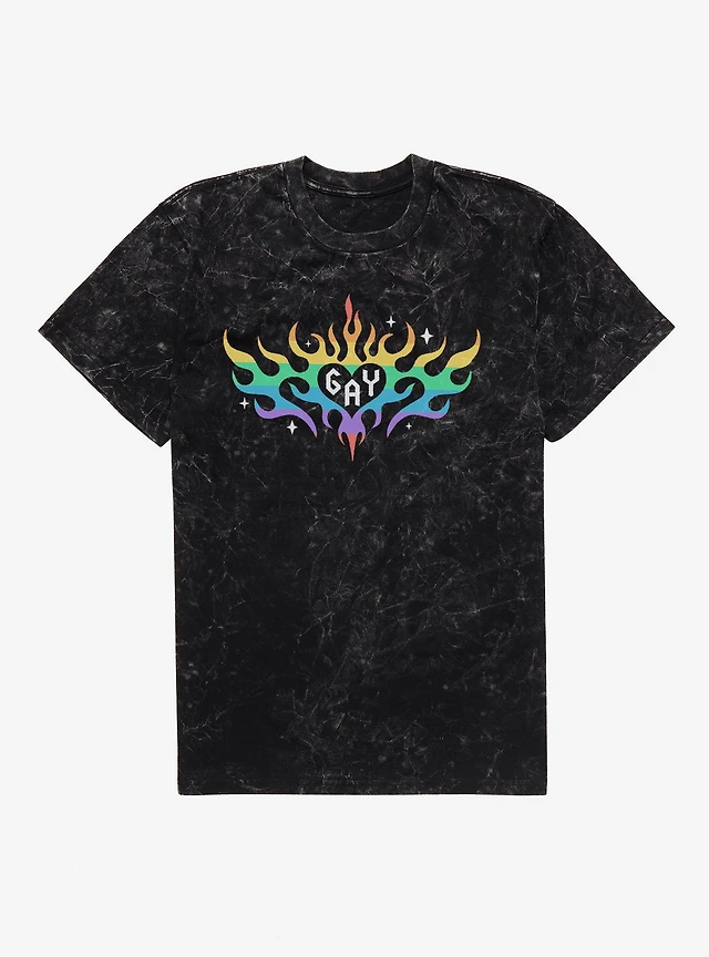 Pride Rainbow Flame Heart Mineral Wash T-Shirt