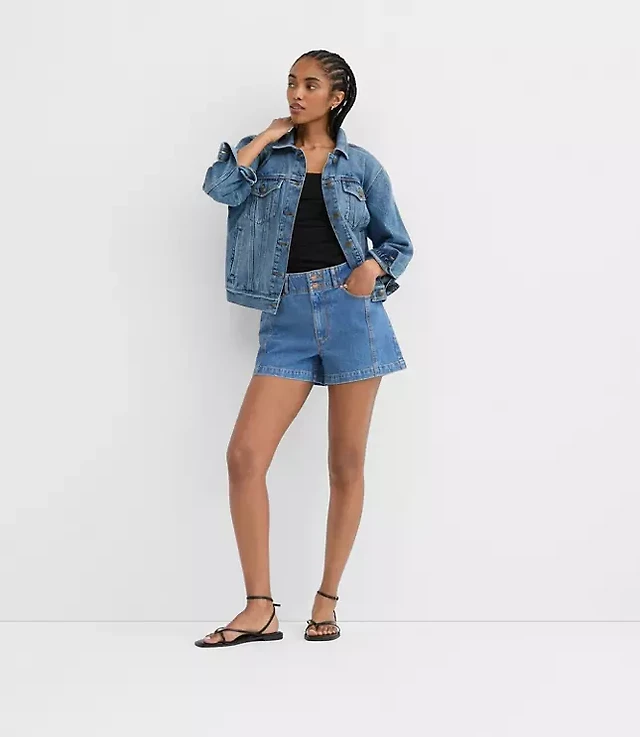 Rivete Curvy Seamed High Rise Denim Shorts Mid Wash