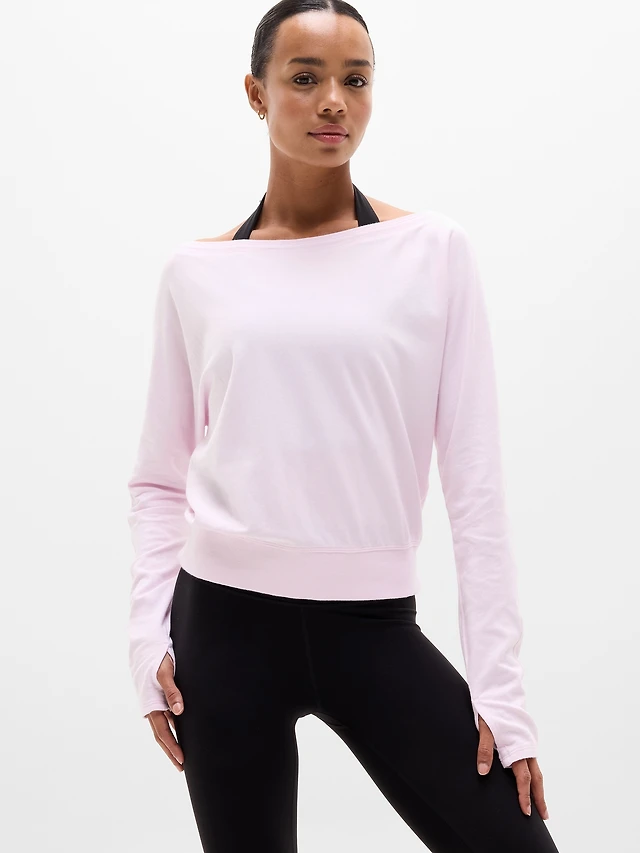 AE Off-the-Shoulder Short-Sleeve Sweatshirt