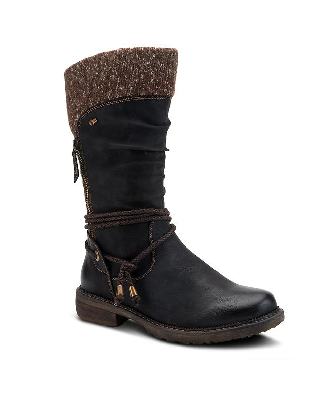 L'Artiste Women's Antilles Floral Embossed Suede Booties with Vintage Buckle Detail, Inside Zipper, Low Heel, and Faux Fur Lining – Boho-Inspir