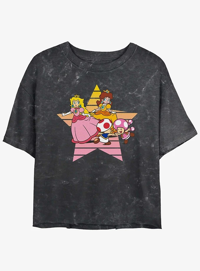 Nintendo Princess Peach & Daisy Star Girls Mineral Wash Crop T-Shirt