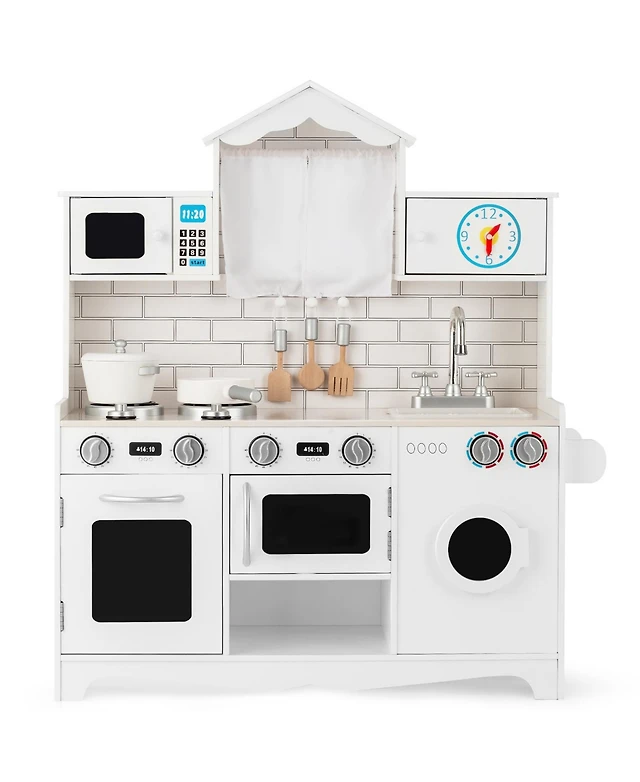 Sugift Wooden Kids Kitchen Pretend Play Toys with Washing Machine