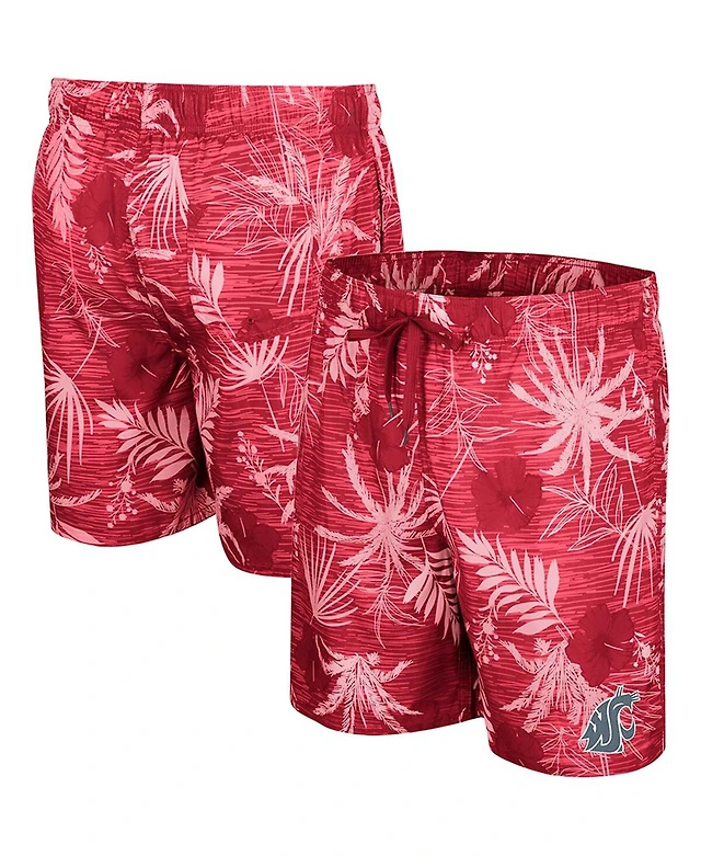 Men's Wes & Willy Crimson Washington State Cougars Vintage-Like Floral Swim Trunks