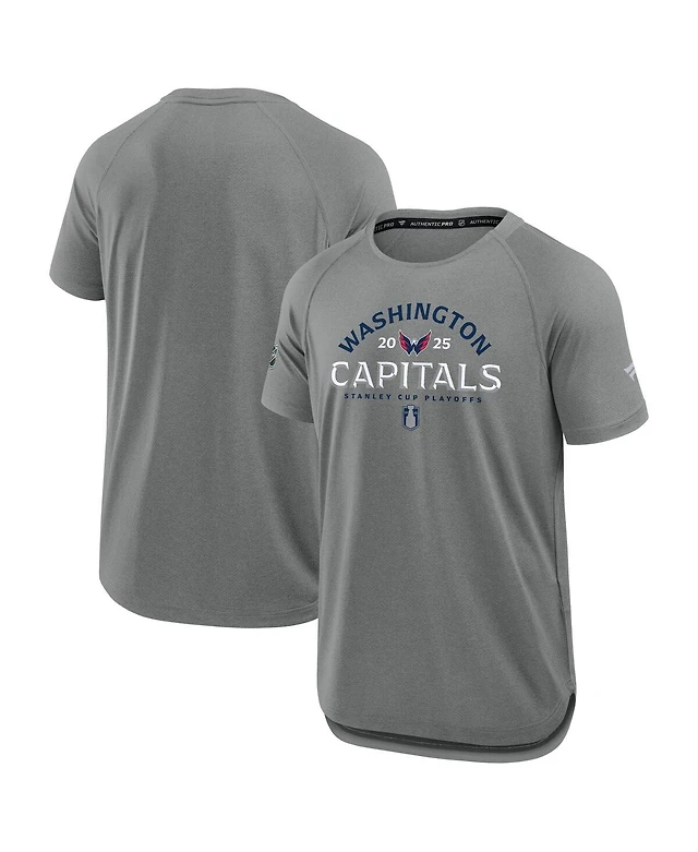 Fanatics Men's Gray Washington Capitals 2025 Stanley Cup Playoffs Authentic Pro Road Performance Short Sleeve Pullover Hoodie