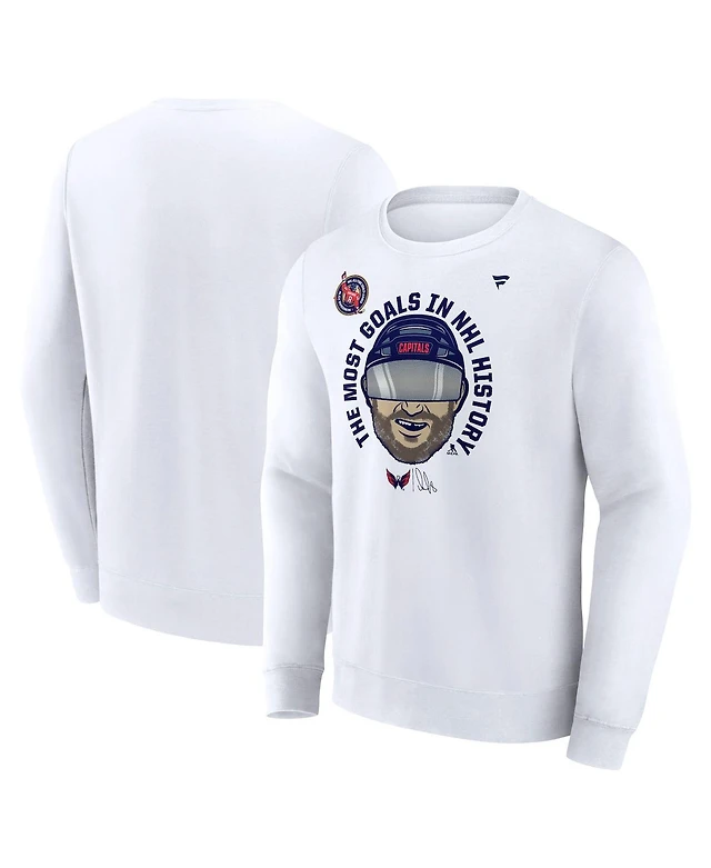 Fanatics Men's Alexander Ovechkin White Washington Capitals Nhl All-Time Leading Goal Scorer The Great 895 Fleece Pullover Sweatshirt