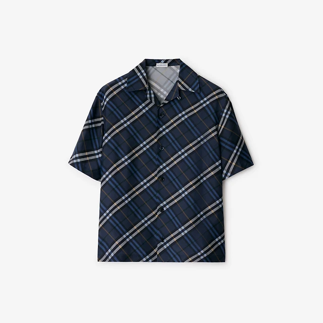 Relaxed Fit Check Silk Poplin Shirt in Ink blue - Men, Cotton | Burberry® Official
