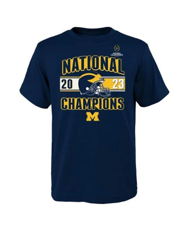 Youth Blue 84 Navy Michigan Wolverines College Football Playoff 2023 National Champions Gold Dust Schedule T-shirt