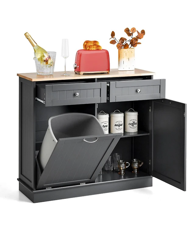 Kitchen Tilt Out Trash Cabinet with 2 Drawers and Adjustable Shelf