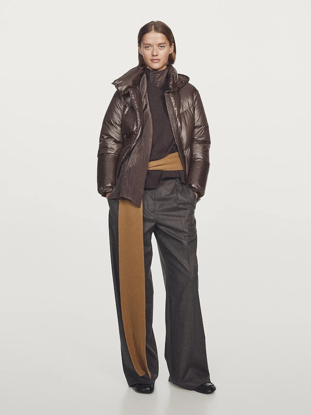 Water-repellent puffer jacket with scarf detail