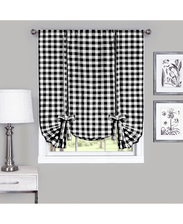 Kate Aurora 2 Piece Country Farmhouse Buffalo Plaid Pleated Rod Pocket Window Curtain Panels