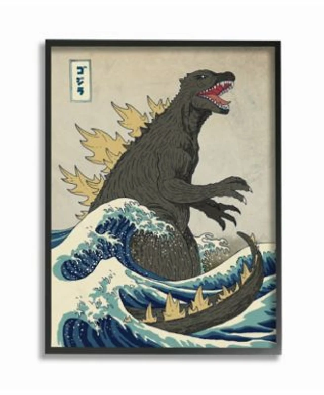 Stupell Industries Godzilla In The Waves Eastern Poster Style Illustration Wall Plaque Art Collection