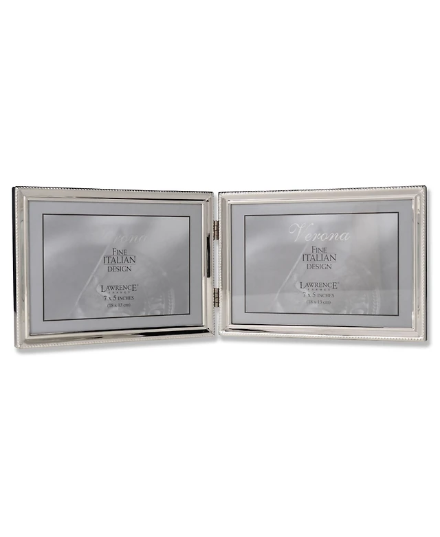 Lawrence Frames Polished Silver Plate Hinged Double Horizontal - Bead Border Design - 5" x 7"