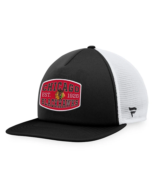 Men's Fanatics Black, White Chicago Blackhawks Foam Front Patch Trucker Snapback Hat