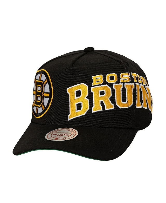 Mitchell & Ness Men's Black Boston Bruins Busted Logo Wordmark Wrap-Around Pro Pinch Adjustable Hat