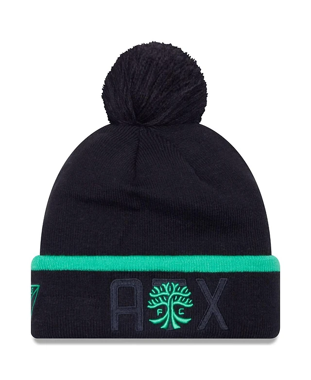 Men's New Era Black Austin Fc Wordmark Kick Off Cuffed Knit Hat with Pom