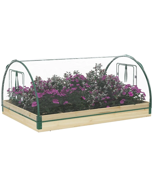 Outsunny Raised Garden Bed with house Pvc Cover, 4' x 3' x 2', Natural