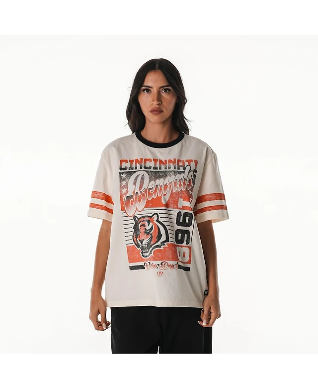 The Wild Collective Women's Cream Cincinnati Bengals Vintage Drop Shoulder Oversized Boyfriend T-Shirt