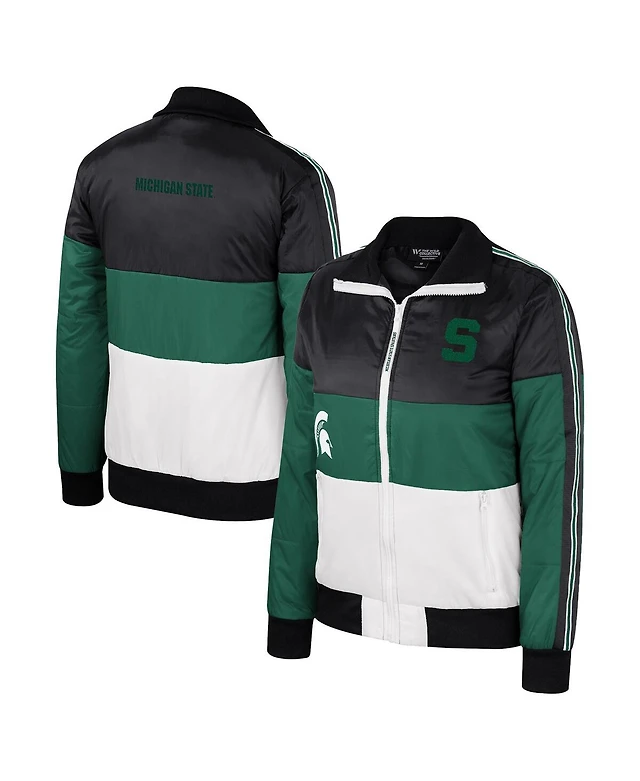 Women's The Wild Collective Green Michigan State Spartans Color-Block Puffer Full-Zip Jacket