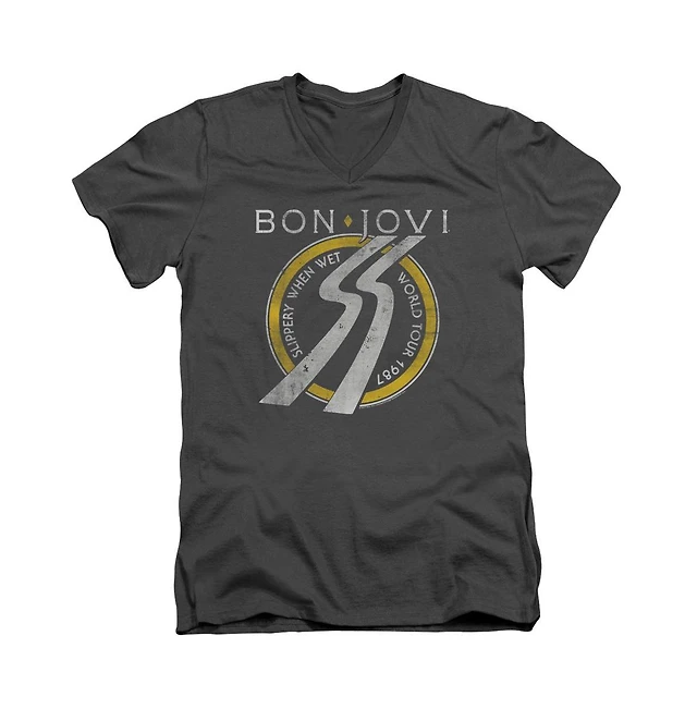 Bon Jovi Men's Slippery When Wet World Tour Short Sleeve Adult V Neck Premium Cotton Tee / T-Shirt