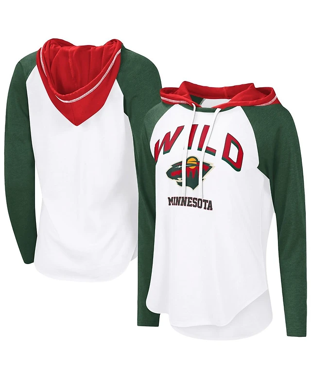 G-iii 4Her by Carl Banks Women's White Minnesota Wild Vip Raglan Long Sleeve Hoodie T-Shirt