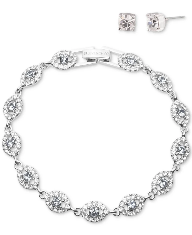 Givenchy Silver-Tone 2-Pc. Set Stone Scatter Cluster Cuff Bangle Bracelet & Matching Drop Earrings