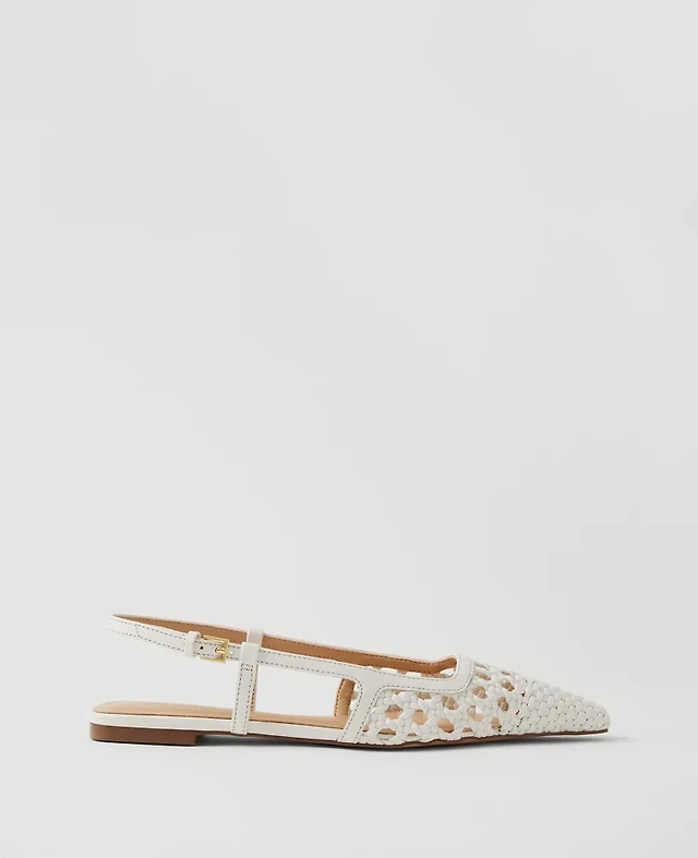 Ann Taylor Woven Leather Nip Toe Slingback Flat Women's