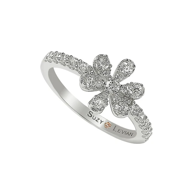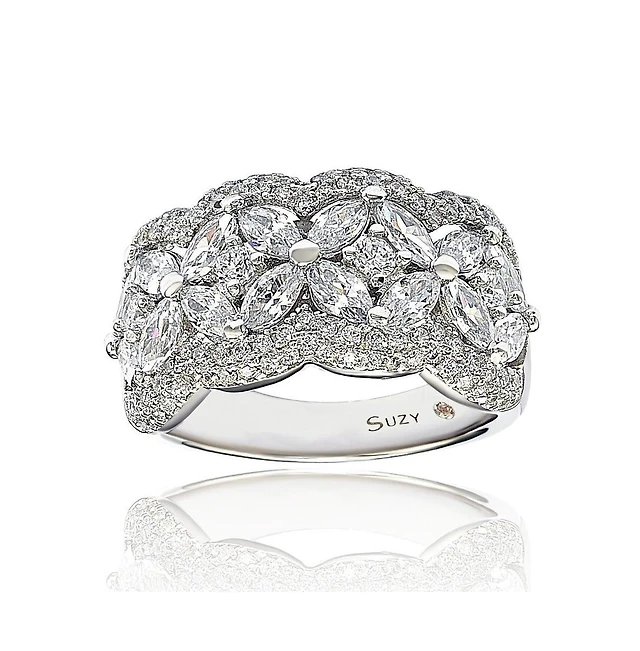 Suzy Levian Sterling Silver White Cubic Zirconia Flower Ring