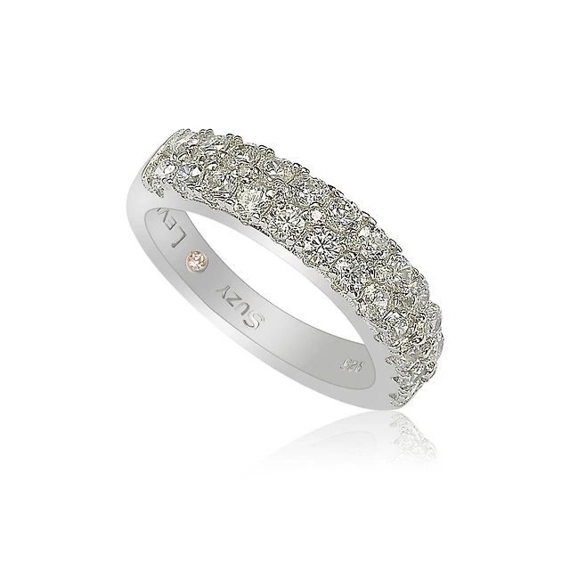 Suzy Levian White Cubic Zirconia Sterling Silver Pave Half Eternity Ring