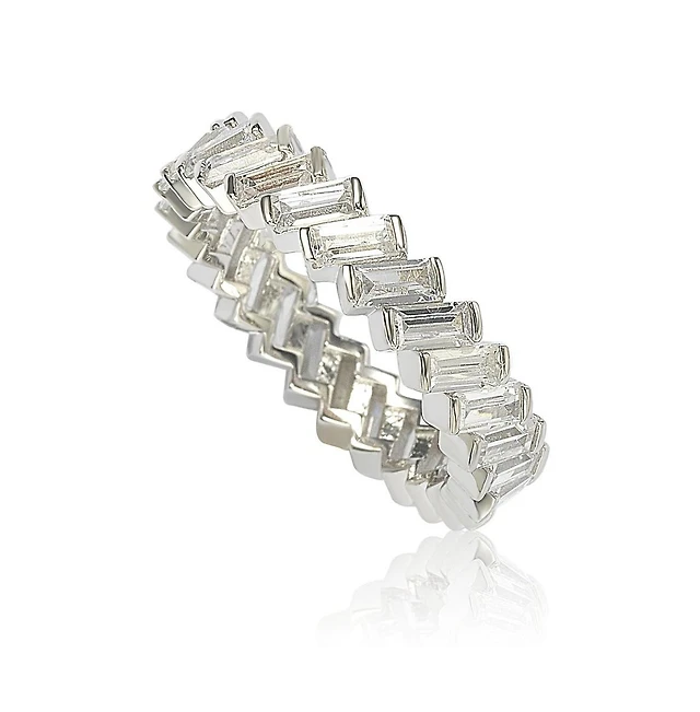 Suzy Levian Sterling Silver White Cubic Zirconia Baguette Eternity Band Ring