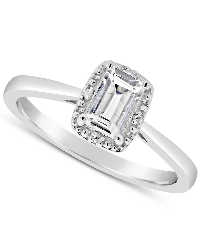 Princess-Cut White Lab-Created Sapphire and Diamond Accent Promise Ring Sterling Silver