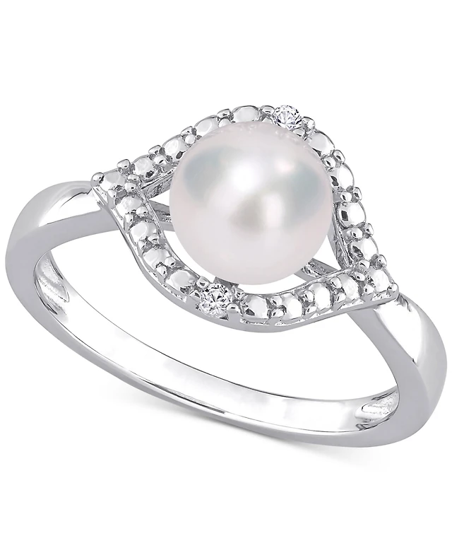 Blue Lagoon® by Mikimoto 7.0-7.5mm Akoya Cultured Pearl and 1/5 CT. T.w. Diamond Ring in 14K White Gold
