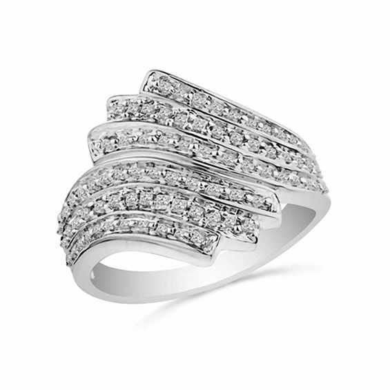Previously Owned - 1/8 CT. T.w. Diamond Criss-Cross Orbit Ring in Sterling Silver