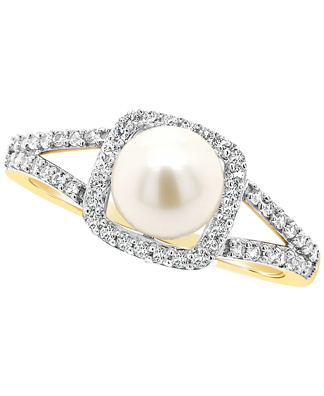 Cultured Freshwater Pearl (3-1/2-4mm) & White Topaz (1/8 ct. t.w.) Ring Sterling Silver