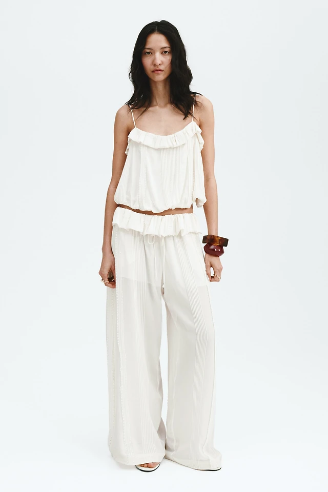 High-Waisted Crinkle Gauze Barrel Ankle Pants