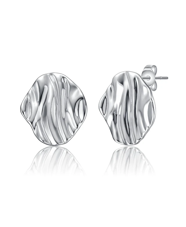Sterling Silver White Gold Plated Rippled Surface Stud Earrings