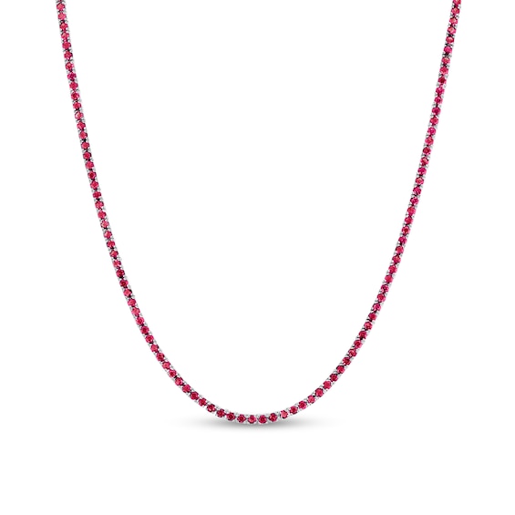 Ruby Tennis Necklace in 14K White Gold - 17"
