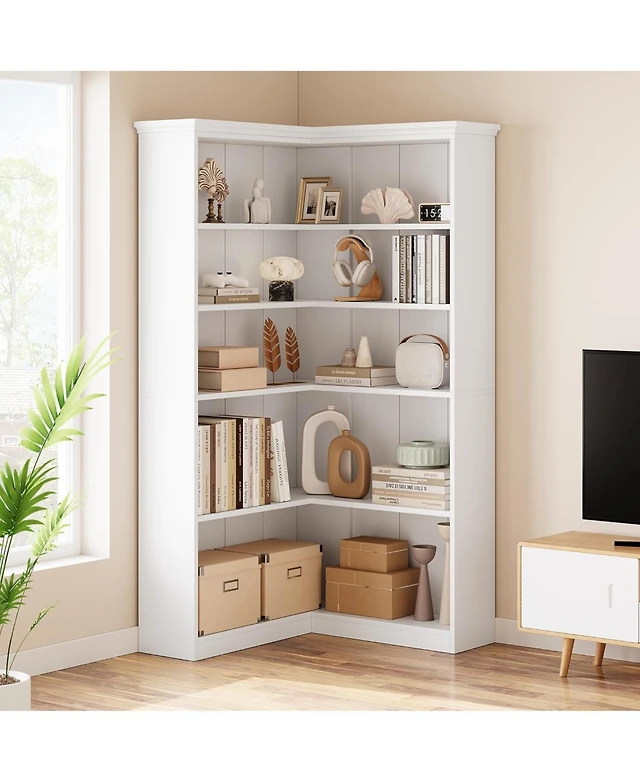 Tribesigns 5-Shelf Bookcase with Drawers, 72" Tall White Bookshelf, Modern Free-Standing Wood Bookcase, Large Open Display Storage Book Shelf for Livi
