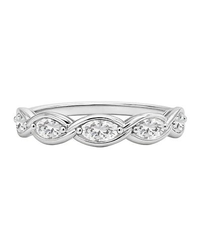 Previously Owned - Emerald-Cut and Round Lab-Created White Sapphire Triple Row Band in Sterling Silver