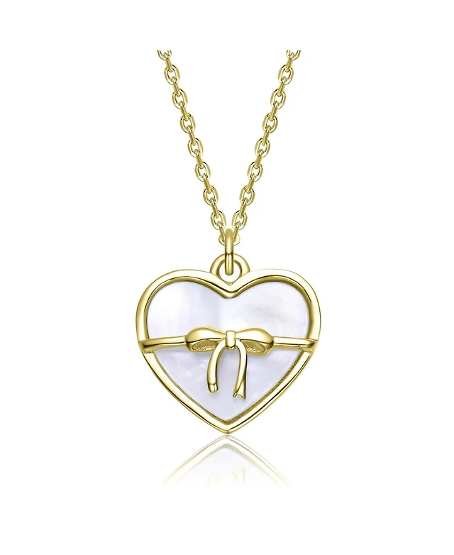 GiGiGirl 14K Gold Plated with White Mother Of Pearl Heart or Blue Enamel Bow Pendant Neckalce For Kids