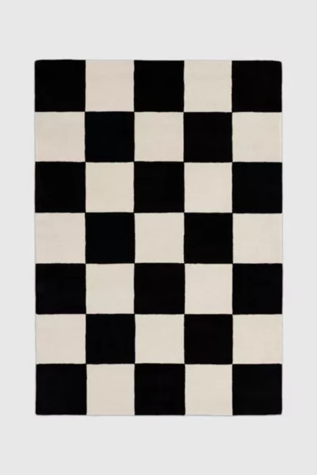 Jubi B&W Large Checkered Hand Tufted Wool Rug