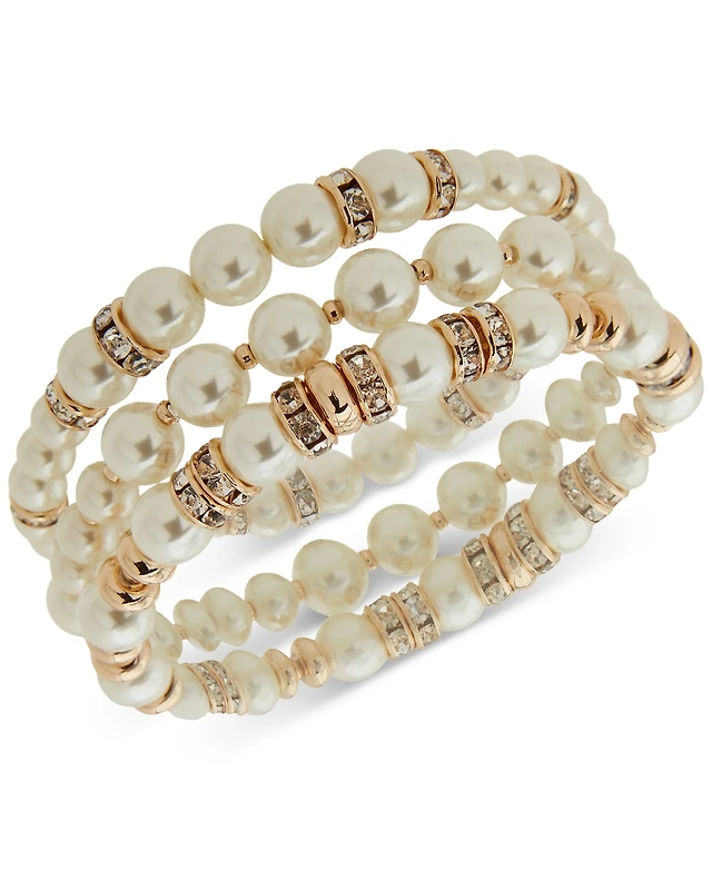 Idyllia ring, Set (3), Mixed cuts, Shell, White, Rhodium plated by SWAROVSKI