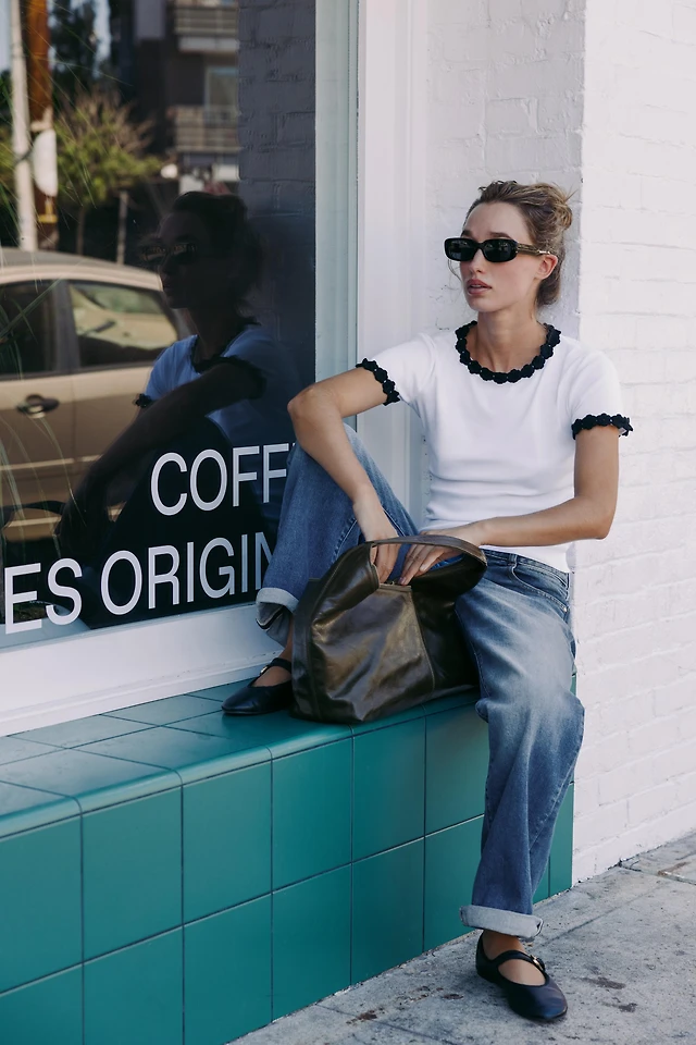 FLOWER TRIM T-SHIRT