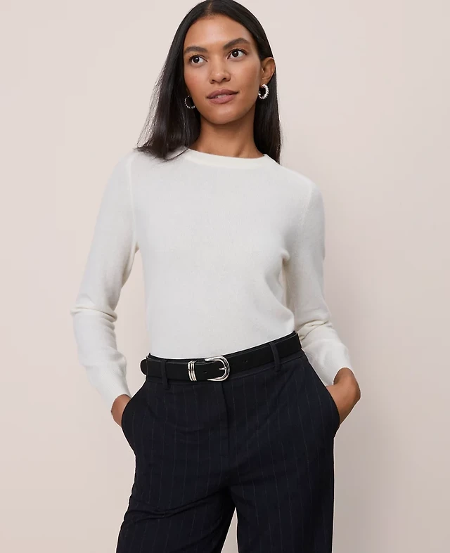 Jennie Liu Women's 100% Pure Cashmere Long Sleeve Crew Neck Pullover Sweater