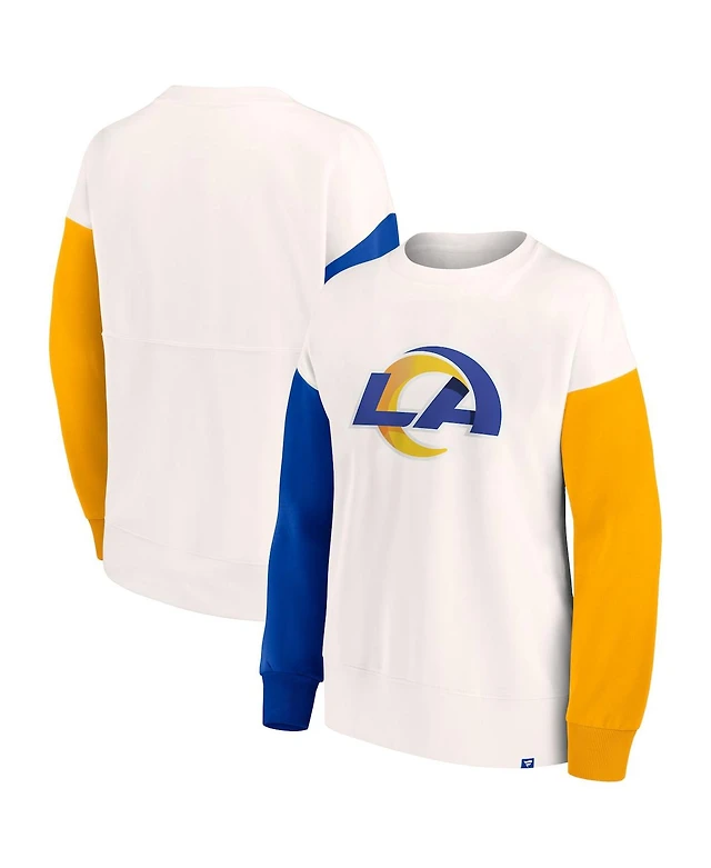 Women's Fanatics White Los Angeles Rams Colorblock Primary Logo Pullover Sweatshirt