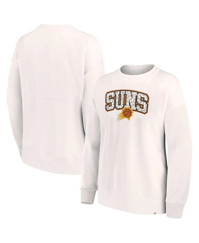 Women's Fanatics White Phoenix Suns Tonal Leopard Pullover Sweatshirt