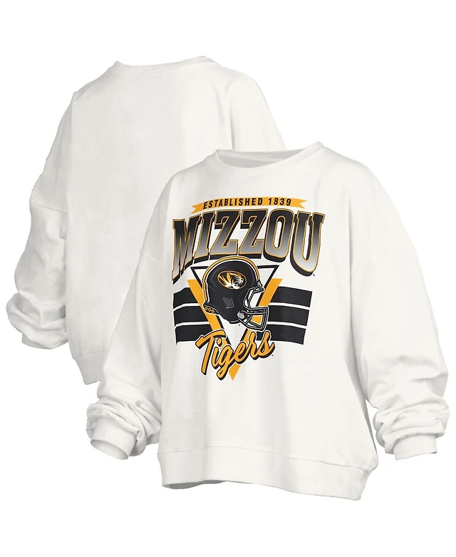 Pressbox Women's White Missouri Tigers Oversized Janice Retro Waist-Length Pullover Sweatshirt